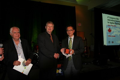 ISAP President Sammy Boussiba and Co-Chair of the Local Organizing Committee for ISAP 2011 Alan Critchley present prize to Chen
