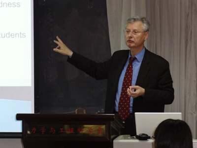 He was received by Dongxiao Zhang, executive vice dean of COE, and Pingchou Han, assistant dean for global education. Lucas made a speech entitled: “How to become a top engineering manager,” to COE students the same day.