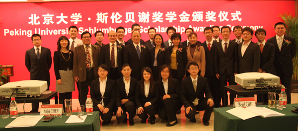 Schlumberger Beijing Geoscience Center General Manager Pearl Chu, Schlumberger China Personnel Manager Christy Chang and Director of Schlumberger China Petroleum Institute Bernard Montaron conferred the awards at a Peking University ceremony.