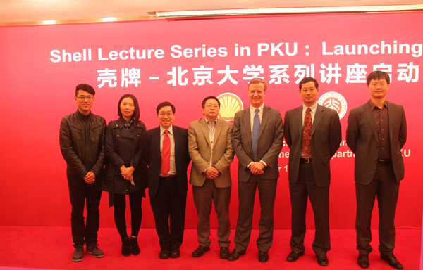 Co-sponsored by the Department of Energy and Resources Engineering and Shell (China) Projects and Technology, the launching ceremony of Shell Lecture Series in PKU was held in Yingjie Overseas Exchange Center, Peking University (PKU) on October 17. Mr. Michiel Mak, Vice President of Shell China, Professor Dongxiao Zhang, dean of the College of Engineering, Dr. Hon-Chung Lau, production technology adviser from Shell (China), Mr. Jiu-Shan Yang, general manager of Shell (China) Exploration and Production Commercial Contracts, and Ms. Shelly Zhao, HR manager of Shell (China), attended the event along with nearly 100 faculty members and students from Peking University. The ceremony was hosted by Associate Professor Bin Gong, from Department of Energy and Resources Engineering, College of Engineering.