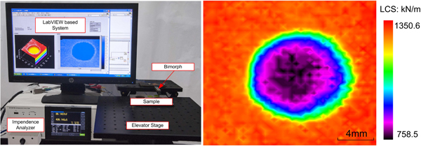 Enlightened by the Atomic Force Microscopy, Prof. Li proposed a quantitative EMI method based on a piezoelectric bimorph cantilever. Here the sample’s local contact stiffness (LCS) was used as the identification parameter for NDT. Based on the equivalent circuit theory, the LCS can be quantitatively derived from the bimorph’s impendence frequency sweeping curves. A LabVIEW based NDT system was assembled and experimental results showed that the defects can be well reproduced. Both the defect type and the damage degree can be obtained from the LCS image. The proposed quantitative EMI holds great promise for NDT as well as health diagnose for tumors such as breast cancer.