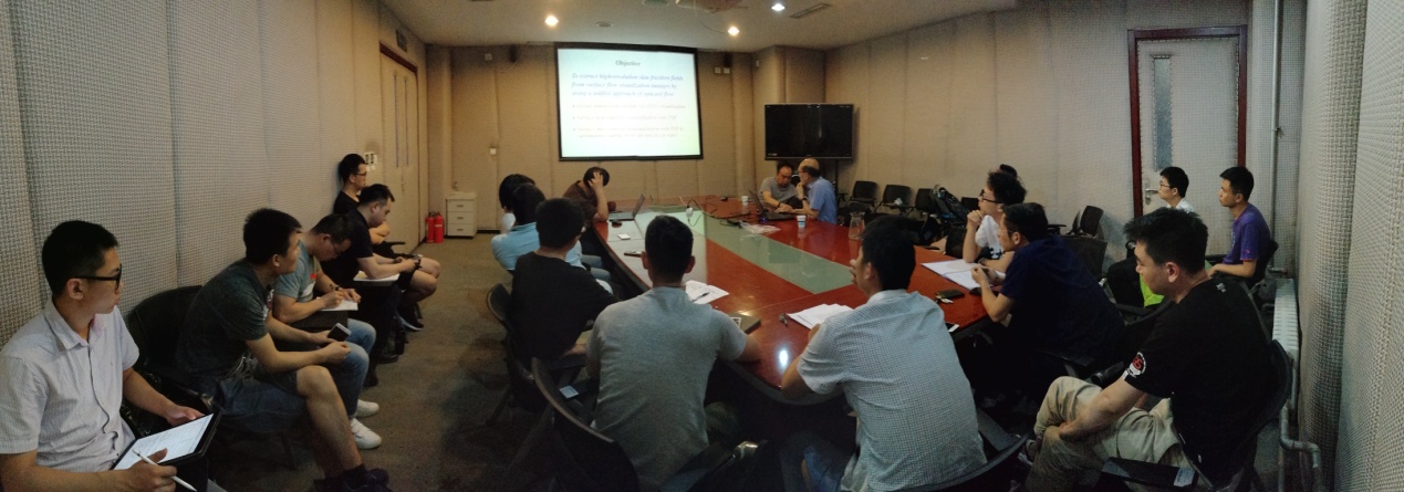 On the afternoon of June 1, Prof. Tianshu Liu gave a lecture titled" Global Skin-Friction Diagnostics from Surface-Pressure Fields ". Prof. Jiezhi Wu of Peking University hosted the lecture. Prof. Liu discussed the feasibility of global diagnostics of skin-friction fields in complex flows from surface-pressure fields. The exact coupling relation between skin-friction and surface-pressure though the boundary enstrophy flux (BEF) is derived from the Navier-Stokes equations for an incompressible flow. The variational formulation with the appropriate regularization term is given to solve an inverse problem for a skin-friction field when the BEF field is given. Prof. Liu indicated that this method is particularly applicable to pressure-sensitive-paint measurements to understand the skin-friction topology and near-wall flows of aerodynamic bodies.