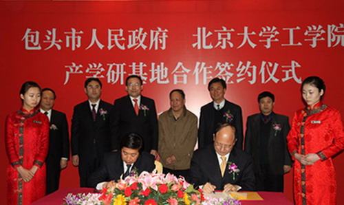 College of Engineering Dean Shiyi Chen, Inner Mongolia Autonomous Region Vice Chairman Qijun Guo and Baotou City Mayor Weidong Sun signed an “Agreement on Cooperation Framework for Entrepreneurship and Technology Transfer” and a “Rare Earth Denier Nylon Industrial Projects Agreement.”