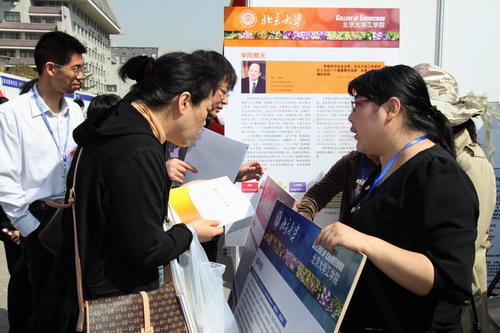 The annual event, aimed to keep prospective students and parents better informed of admission policies, takes place about two months prior to the National College Entrance Examinations in June. Inside the Qiudeba Gymnasium, Admission Director of Peking University Chunhua Qin released the admission policy for the upcoming academic year. Each department and college set up their own booth to receive the public and answer their inquiries.