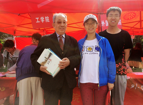 During this activity, the COE alumni shared their campus stories, wrote down their best wishes to the new COE and showed their deep emotion to Peking University as well. To welcome the alumni, the Office of Alumni Affairs and Fund Management prepared many COE brochures, technology transfer programs, quarterly periodicals featuring recent events and books relating to alumni. Especially, Meng Qinglong who entered PKU in 1949 also went back to school from Tianjin on that day. In his 84 years old, he donated his monograph to the new COE, and took pictures with young COEers.