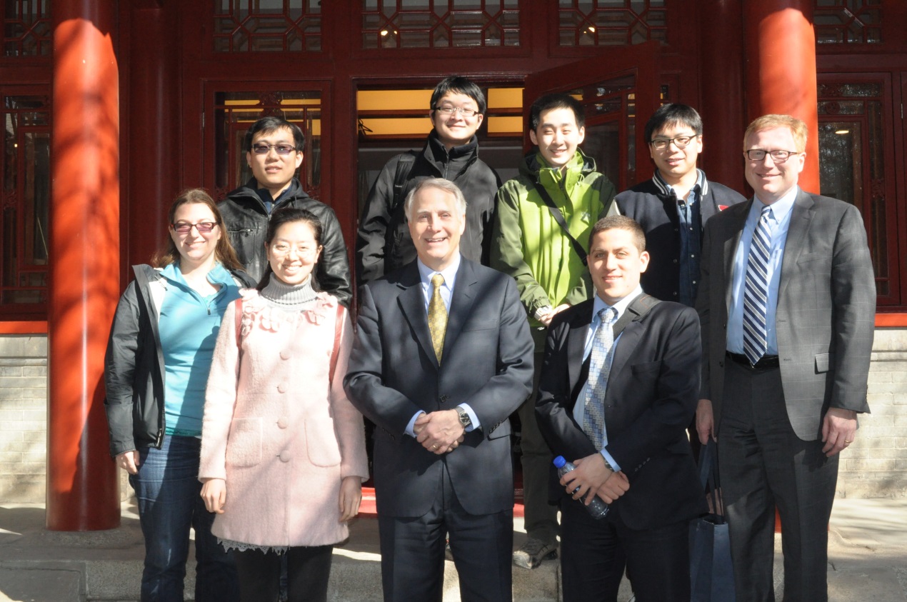Recently, James w. Wagner, President of Emory University (Atlanta, USA) paid a visit to Peking University, accompanied by Mr. Philip Wainwright, vice provost for international affairs of Emory University, and Mr. Rong Cai, Dean of Confucius institute. Professor Dongxiao Zhang, Dean of College of Engineering at Peking University, with Professors Qiushi Ren, Tianyu Xie, Jianzhong Xi and Changhui Li welcomed distinguished guests. Emory delegation talked with students from the joint Ph.D. program of Peking University, Georgia Institute of Technology and Emory University. The US guests also visited the student’s laboratories.