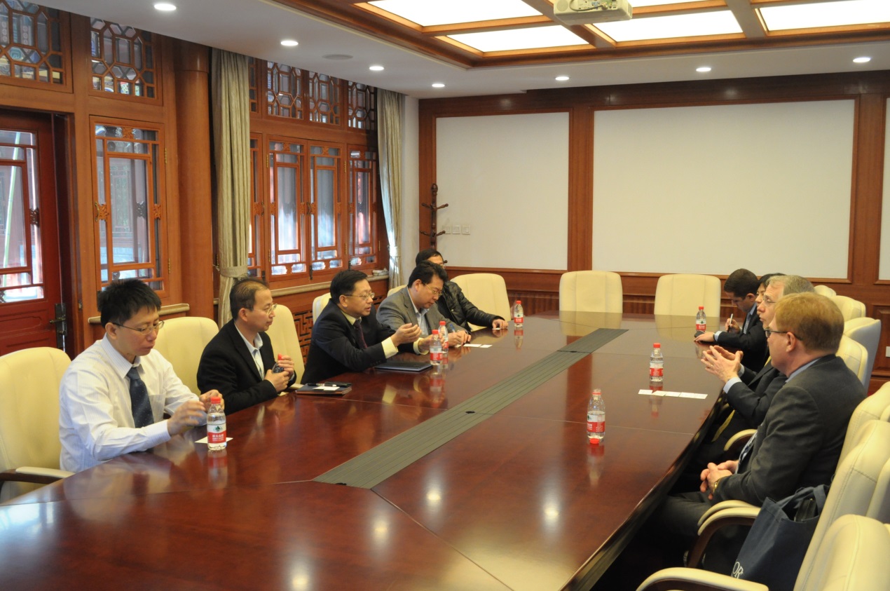 After that, at the Lin Hu Xuan meeting room, the US delegation discussed with the professors of Peking University. Professor Dongxiao Zhang, Dean of College of Engineering (COE) warmly welcomed the US delegation and introduced the implementation of the joint doctoral program in COE. President Wagner highly acknowledged the value of the three school joint training mode. In the end of the talk, Professor Dongxiao Zhang said that COE will further strengthen this collaboration projects.
