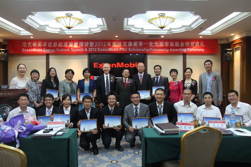 Ten College of Engineering students and five teachers were awarded the ExxonMobil scholarship and Fellowship for their excellent performance in 2012 in studying, teaching and research, in a ceremony held at Yingjie Overseas Exchange Center, Peking University on May 14. Mr. Paul Theys, Chairman of ExxonMobil (China) Investment Co., Ltd., awarded the certificates to all the recipients.
