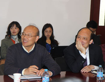 At the meeting were Dean Shiyi Chen, Executive Vice Dean Dongxiao Zhang, Secretary of Party Wenchang Tan and many associate deans and department chairs.