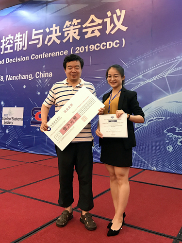 From June 3rd to 5th, 2019, the 31st Chinese Control and Decision Conference (CCDC) was held in Nanchang, Jiangxi. Ph.D. student Xue Feng from Center for Systems and Control Research, College of Engineering, Peking University, won the highest award of the conference –Zhang Siying Excellent Paper Award for Young Researchers, with her paper entitled "Dynamic analysis and decision-making in disease-behavior systems with perceptions".
