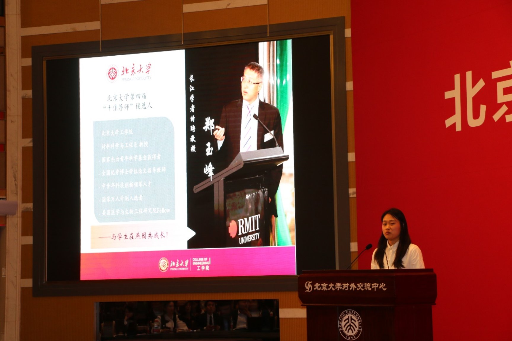 On October 15, the 4th "Top Ten Tutors" selection of Peking University was successfully held in the Sunshine Hall of the Peking University Overseas Exchange Center. After the overall defense of the candidate tutor team, the expert judges and the student judges voted rigorously. Professor Yufeng Zheng of the Department of Materials Science and Engineering of the College of Engineering, together with other 9 teachers, won the honorary title of the Fourth "Top Ten Tutors" of Peking University.