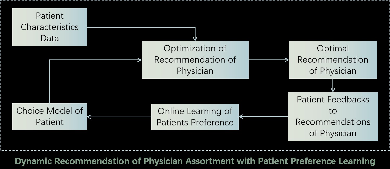 Motivated by a popular physician recommendation application on a web-based appointment system in China, this award-winning paper gives a pioneer work in modeling and solving the physician recommendation problem with heterogeneous illness conditions of patients by using optimization theory, machine learning technology and statistical inference method. In order to solve the challenge brought by the lack of data on patient preferences, the preference learning algorithm is proposed that optimizes the recommendations and learns patient preferences at the same time. The online learning of patients preference is realized by automatically collecting patient feedbacks to recommendations of physician and continuously updating the choice model of patients. Under the goal of optimizing the recommendation of physician, personalized optimal recommendations of physician are provided.